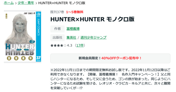 少年漫画のラインナップが非常に豊富であり、試し読みも話数が他のサービスと比べても比較的多いので、購入する際に判断しやすいです。