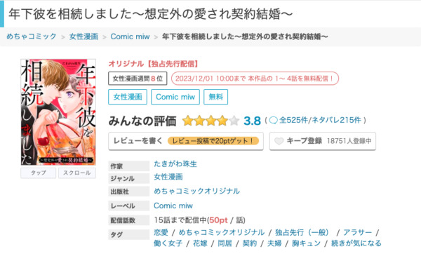 ヒドく悲惨な始まりなんですけど、作者さんの巧みさや主人公りおちゃんの性格と切り替えのよさと降ってわいた年下夫&凄腕秘書の回収の手際のよさにスッキリ、ものすごくテンポのいいモグラ叩きみたいについ面白くて最後まで課金して読んでしまいました。