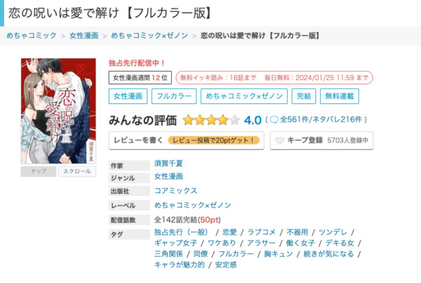 人気の作品でも、「1巻のみ無料」といったタイトルが非常に多くあります。試し読み目的でとりあえず新規登録してみてはいかがでしょうか?